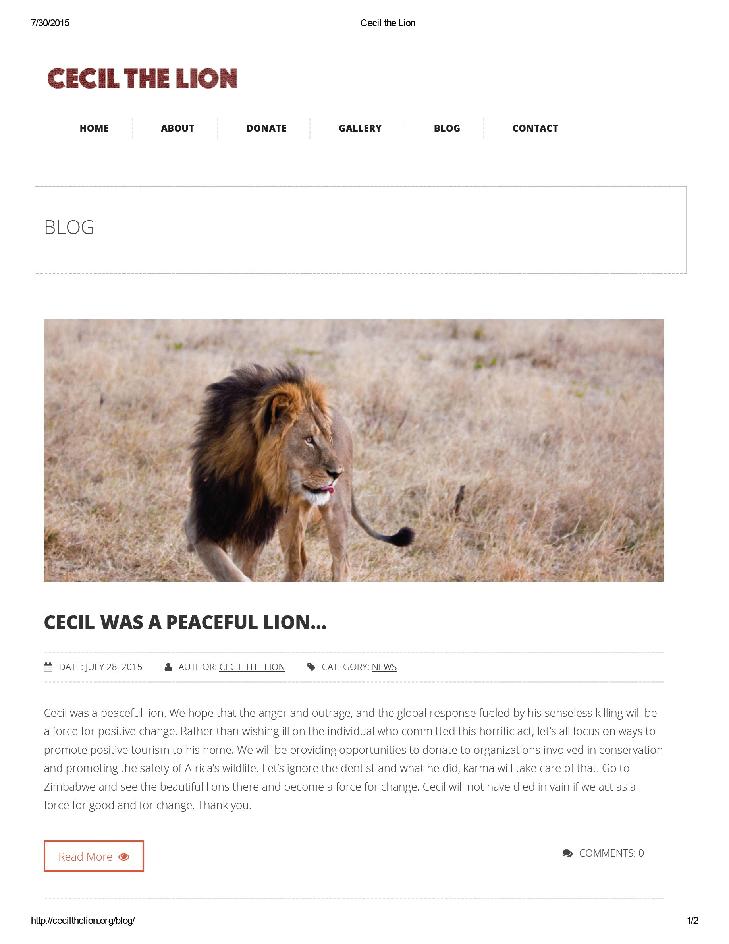 Capitalizing on the recent buzz surrounding the killing of Cecil the Lion in Zimbabwe, Exclusive Adventures, Inc. (also appearing to do business as Adventures Croatia) filed a federal trademark application for CECIL THE LION on July 30th in four different classes for charms, t-shirts, plush toys, and charitable fundraising services for conserving wildlife.
