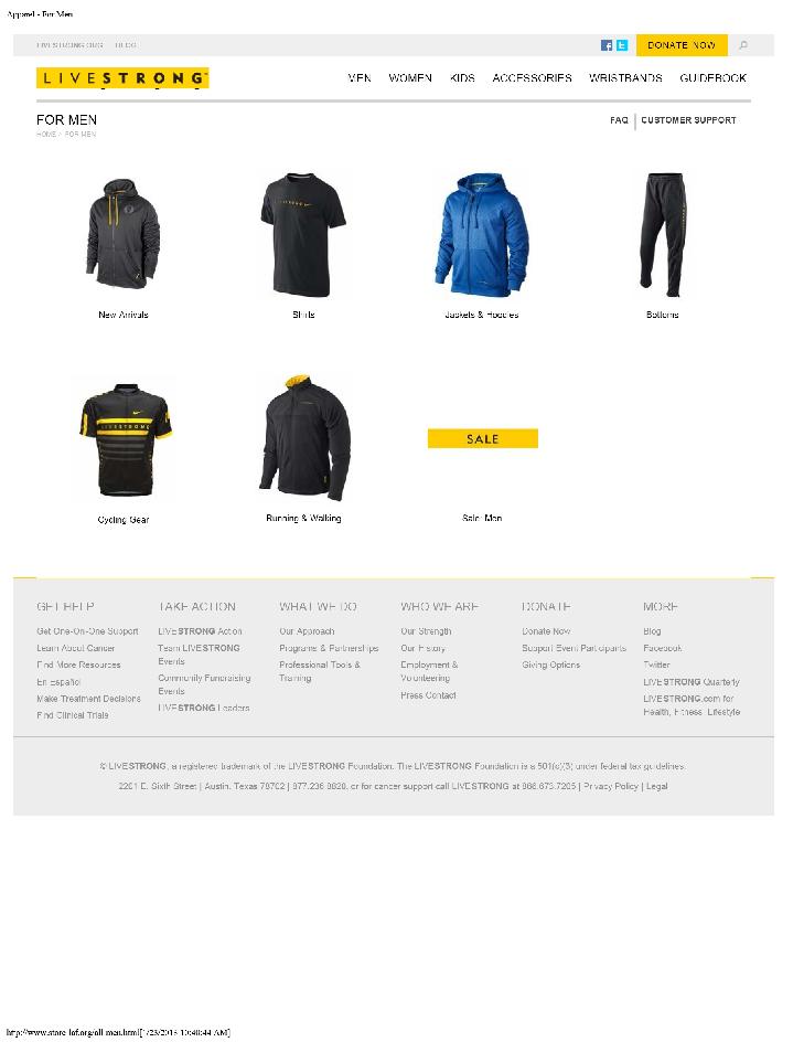 Unfortunately, as most of you know, there is another very popular trademark for LIVESTRONG owned by the LiveStrong Foundation. The LiveStrong Foundation is the owner of two trademark applications in class 25 and many others in various other classes (see below for examples of LIVESTRONG apparel).