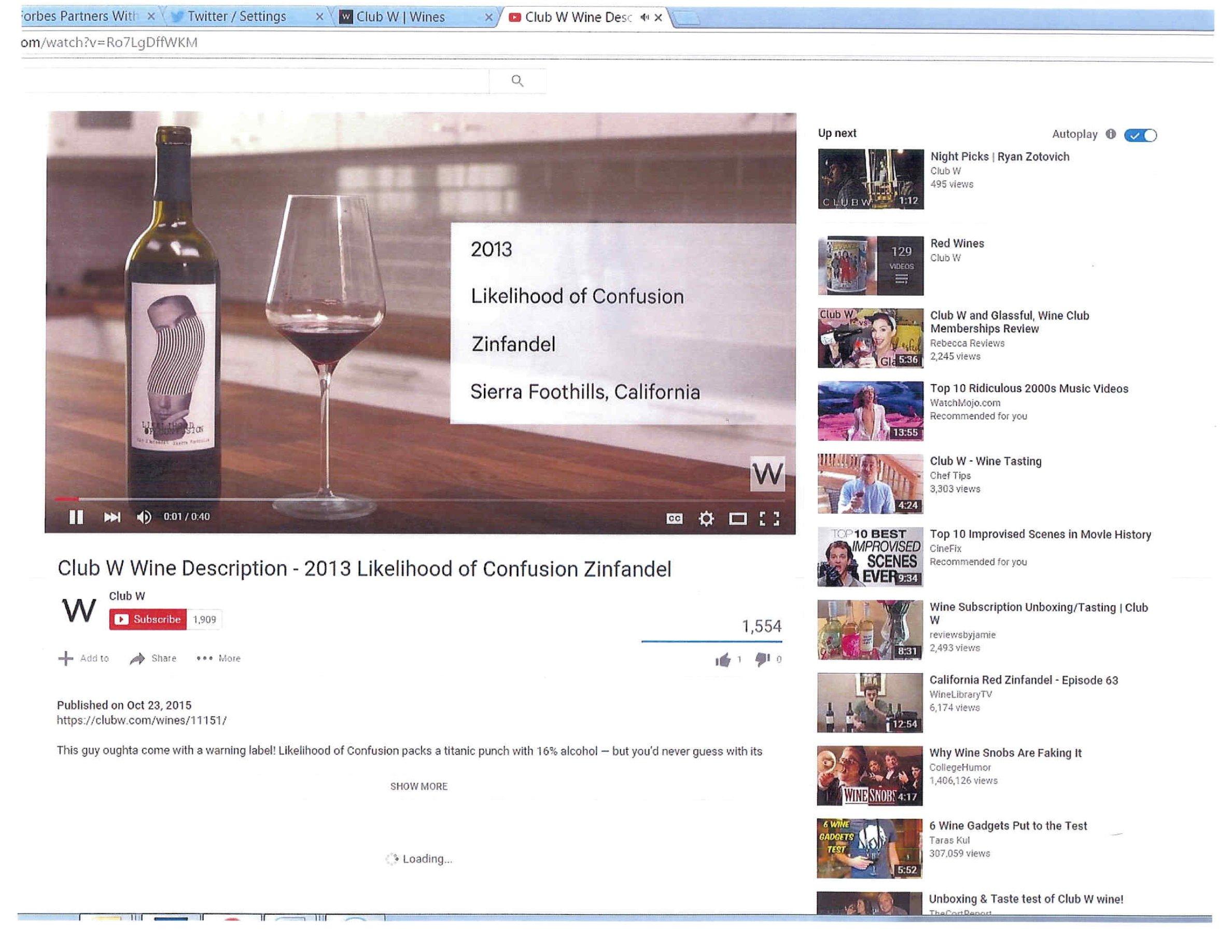 According to the application, the company is currently selling this wine and has been doing so since October 2015. The specimen submitted with the application indicates the wine is a 2013 Zinfandel from Sierra Foothills, California.