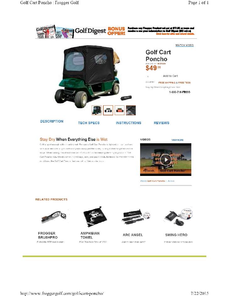 According to the trademark application, the New Hampshire company has been selling these golf cart ponchos since June 2012. If the company is successful in obtaining this registration, they will obtain the exclusive right to use the term GOLF CART PONCHO to describe anything related to covers for golf carts.